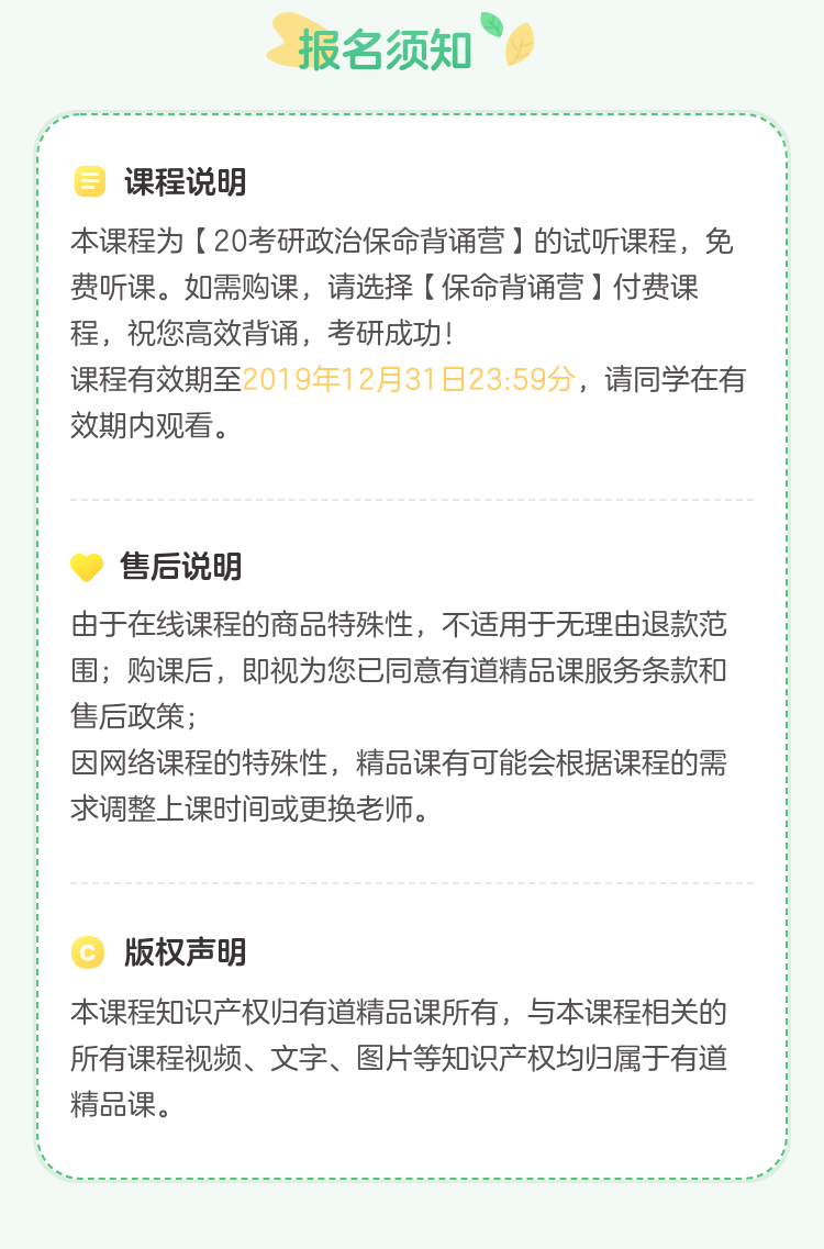 【全程班169元超值续班】20考研政治考前保命背诵营【短线版】...
