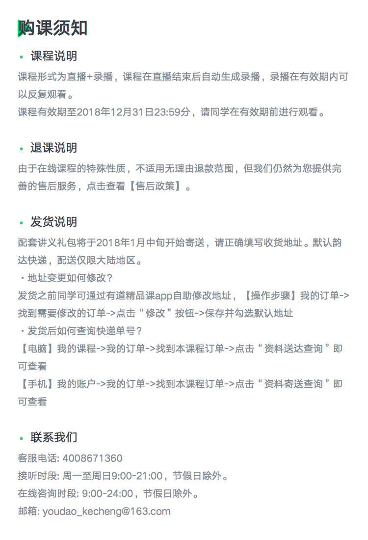 • 默认韵达快递,配送仅限大陆地区。有意购课的同学请尽快购买!