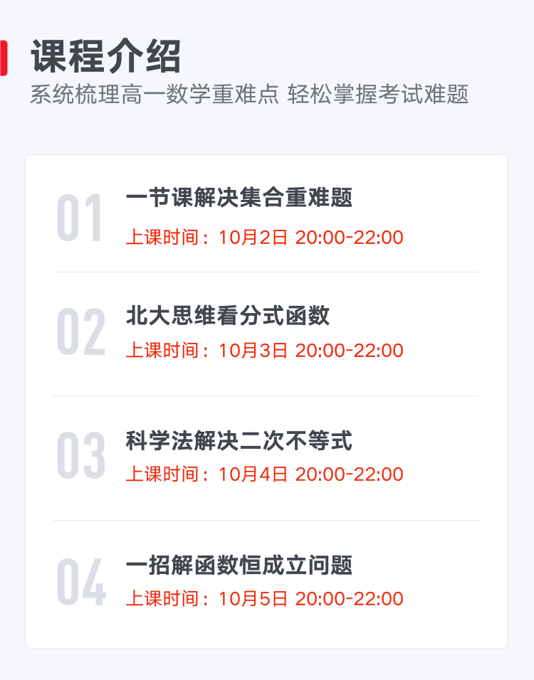 【十一特训】高一数学核心能力提升班(10.2封班仅剩12名)